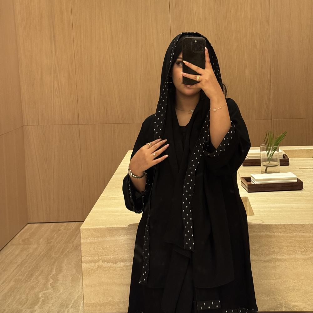 -عبايه بقماش كريب ملكي كوري مع تدخيلات شيفون منقط