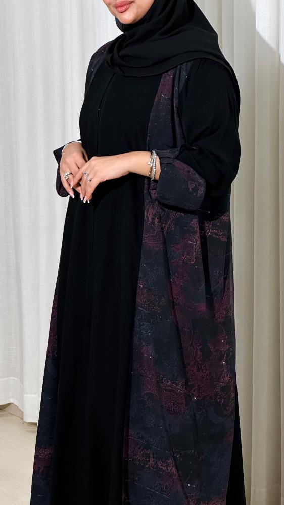 عبايه كريب ملكي كوري مع تدخيلات شيفون ملون