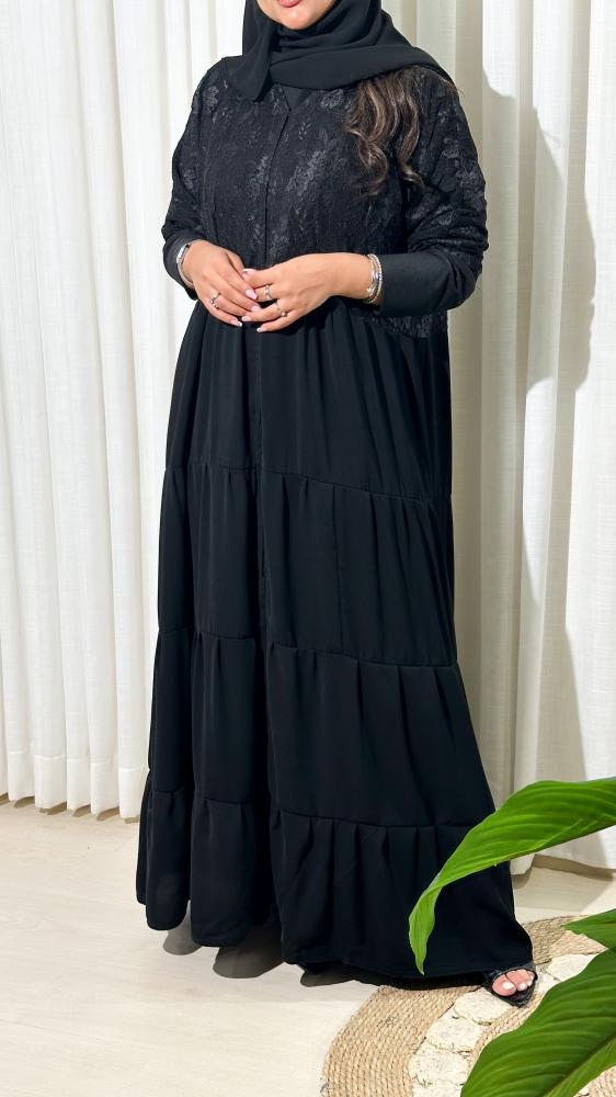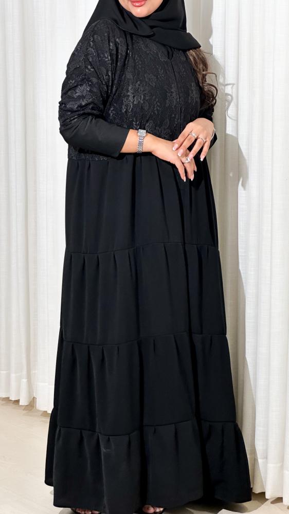 عبايه كريب ملكي كوري مع تدخيلات دانتيل